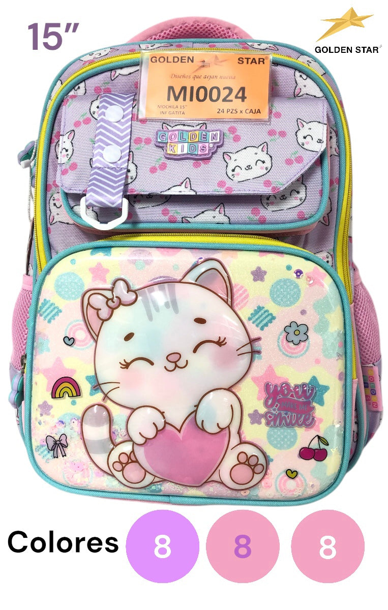 52081 MOCHILA 15" INFANTIL GATITA GK 24P